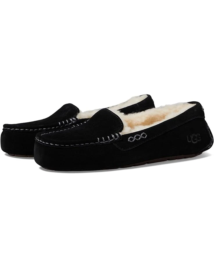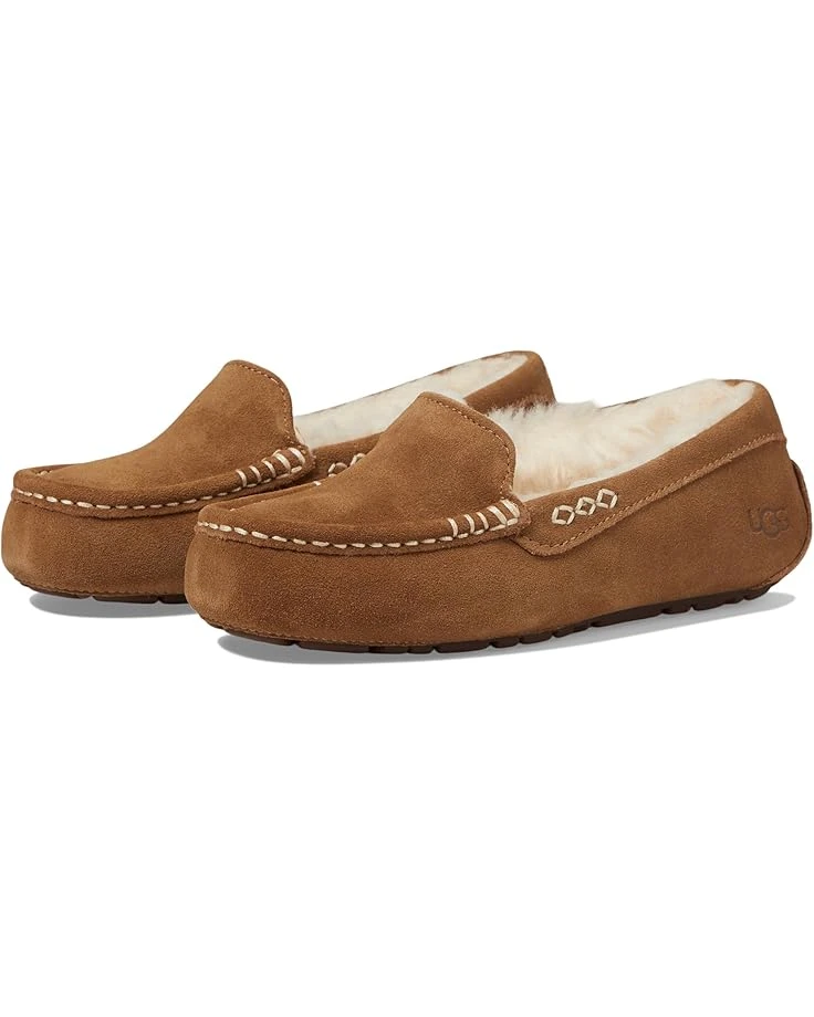 - The Ansley slipper from UGG® offers the ultimate in luxury and comfort. This easy slip-on style slipper offers a water-resistant suede upper in a moc toe silhouette, giving your feet that cozy-warm feel on laidback days.