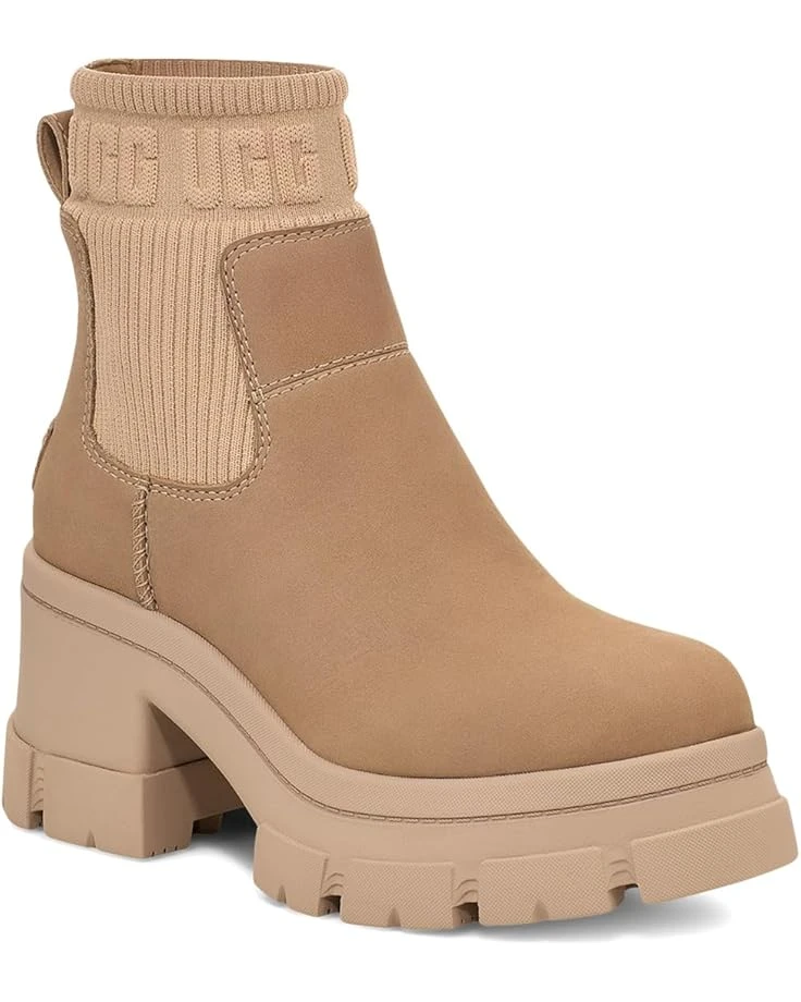 - Never underestimate the power of cozy and comfy UGG® Brooklyn Chelsea boots. It features the water proof leather upper and microfiber lining. It also has the round toe design.