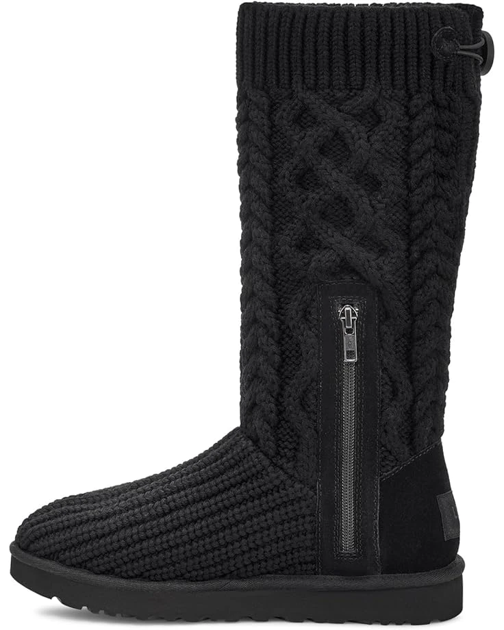 - UGG® Classic Cardi Cabled Knit boots offer supreme comfort to stay warm throughout a cold day journey. A medial zipper with a pull-on style shaft gives easy to wear experience. The quilted boots have round toes and cable-knit upper. A textile lining and 17mm UGGplush™ upcycled wool and lyocell insole ensures better insulation.