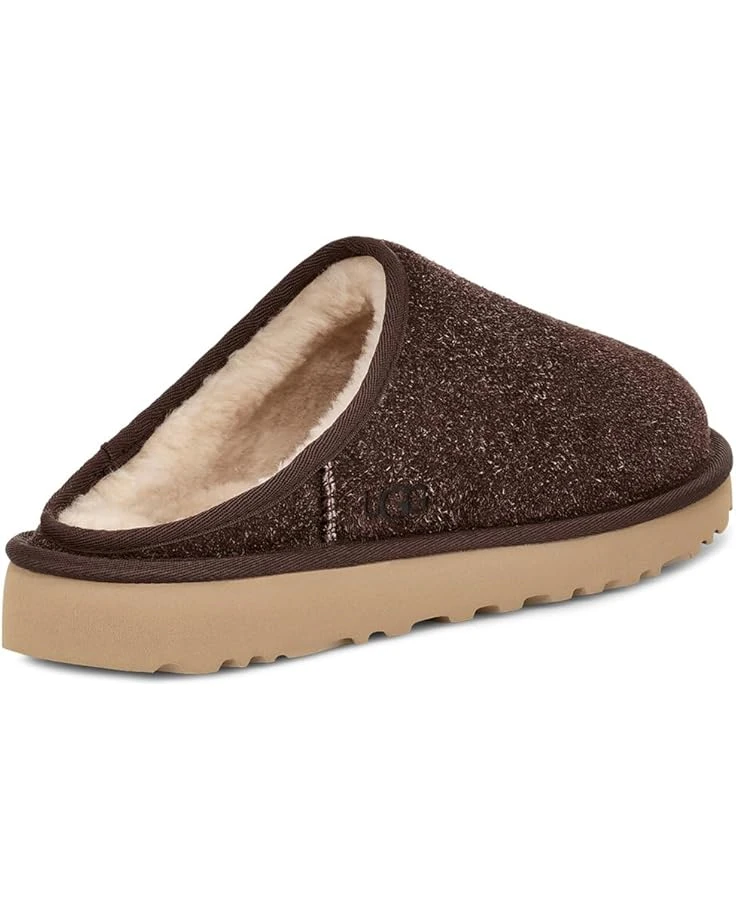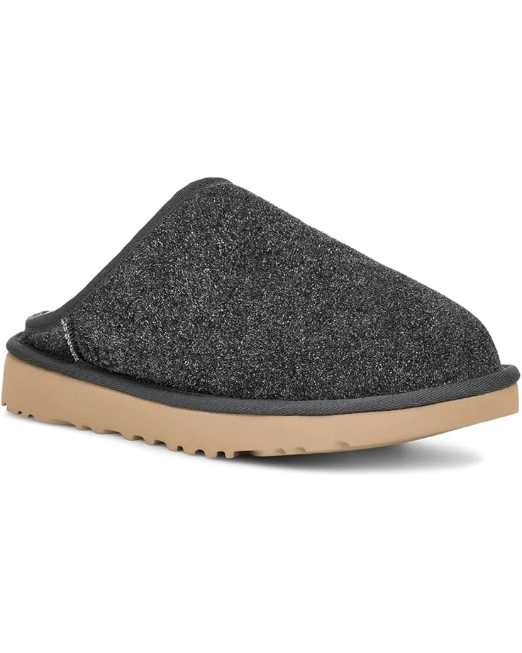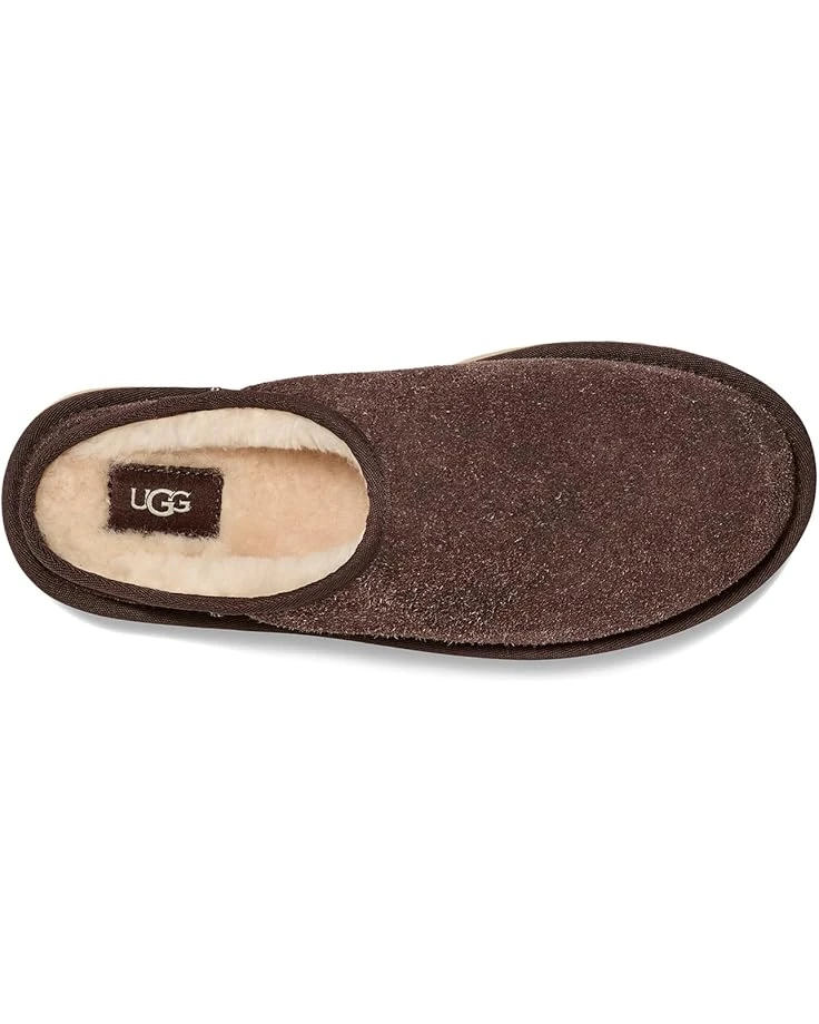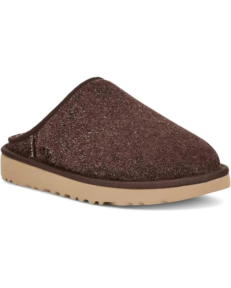 - Be fashionably and comfortably prepared for outdoor fun wearing the UGG® Classic Slip-On Shaggy Suede Slippers. The slip-on pair features cow suede upper construction with 17mm UGGplush™ upcycled wool and TENCEL™ Lyocell lining to provide cushioning comfort. With a close round toe silhouette, the footwear has sheepskin insole to give your feet a cozy and comfy feel throughout the day.