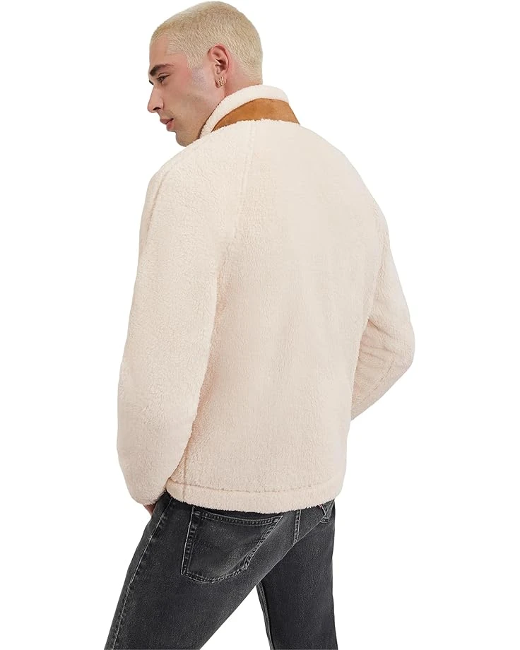 - The UGG® Keane Heritage Full Zip Jacket is a full zip plush fleece and faux suede jacket that is perfect for cold-weather activities. This warm jacket is designed with long sleeves, a high neckline, and a straight hem. The zippered front closure of the jacket keeps the elements out. This fleece jacket makes a great addition to your wardrobe.