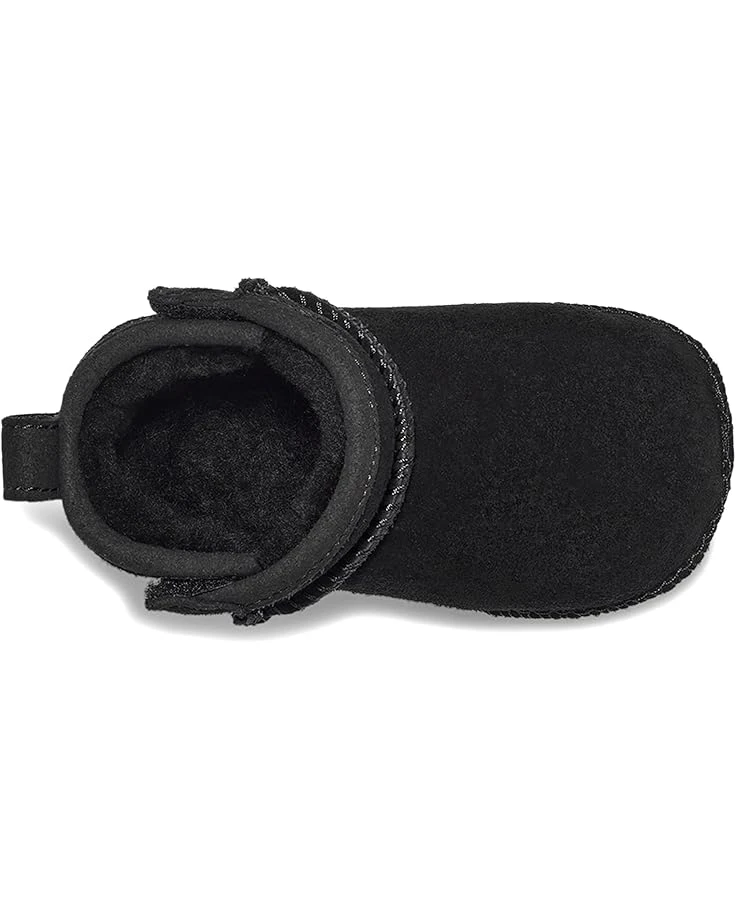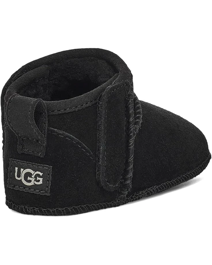 - Mini style, mega comfort! The UGG® Kids Baby Classic Ultra Mini brings iconic style and unmatched coziness to tiny feet. Featuring a premium suede upper and UGGplush™ upcycled wool blend insole and polyester lining, this mini boot offers the signature cushioned feel UGG is known for. The ankle-high design and rubber outsole provide stability, while the convenient hook-and-loop closure makes it easy to put on and take off.