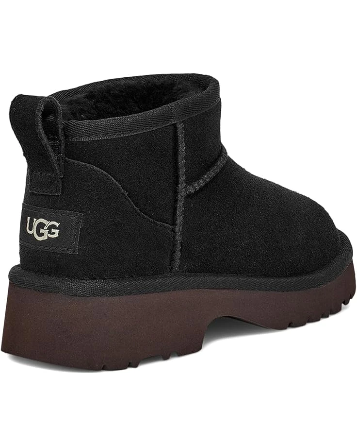 - For your little fashionistas, the UGG® Kids Classic Ultra Mini New Heights boots take the comfort of the Classic Boots and bring it to new heights. The suede upper, UGGplush™ 60% upcycled wool, 40% TENCEL™ Lyocell® lining and insole, and a foam footbed keep your kid’s feet comfortable and warm all day. These mini boots are perfect for any dressed-up occasion.