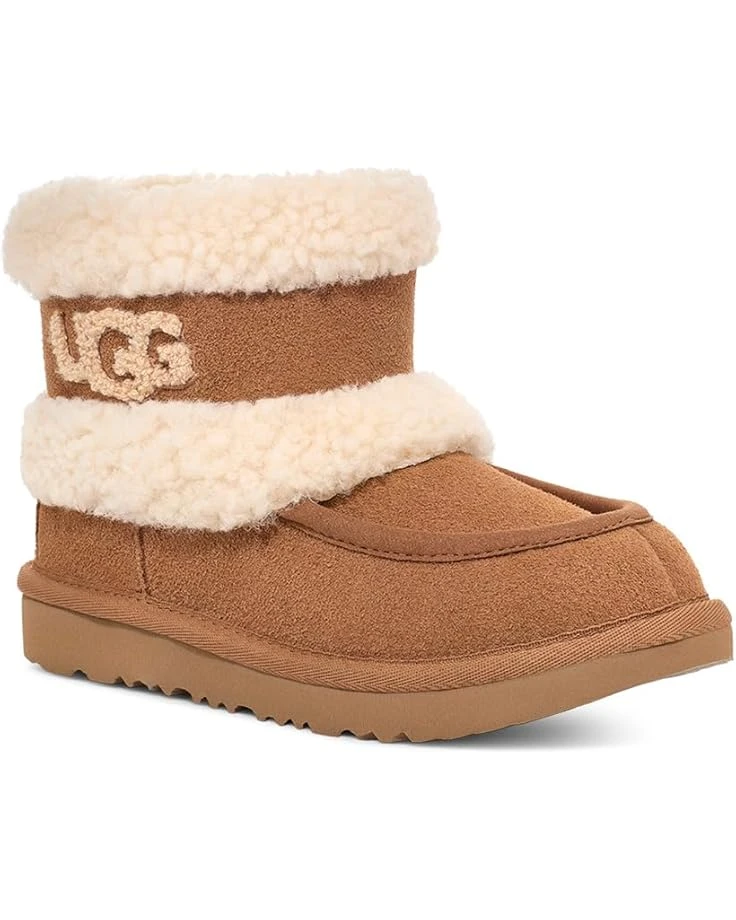 - Crafted from 17mm twinface sheepskin upper, the UGG® Kids Ultra Mini Fluff shearling style boots gives a soft and comfy feet all day long. It features 17mm sheepskin lining, 17mm UGGplush upcycled wool footbed, and SugarSole™ EVA outsole.