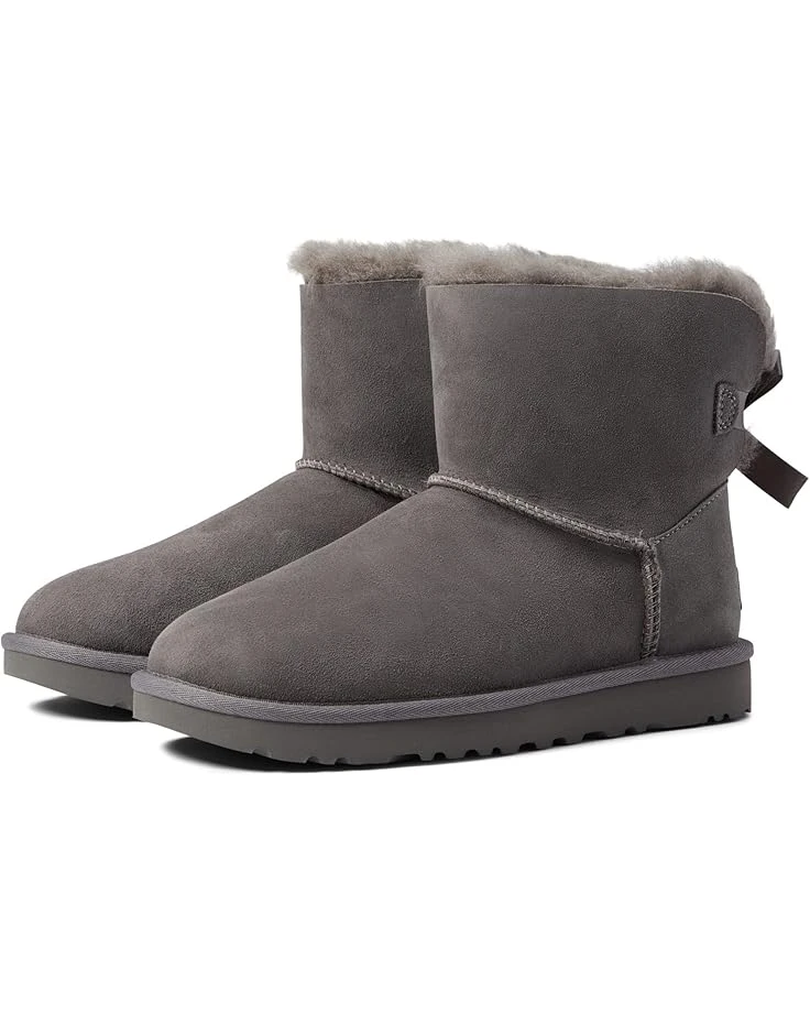 - Keep warm and look good in the UGG® Mini Bailey Bow II ankle boot; crafted from pretreated Twinface sheepskin and suede upper topped with a satin bow for added appeal.