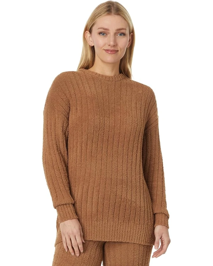 - The UGG® Riz Top Rib is an oversized crewneck made from a knit so soft – it’s hard to wear anything else. Designed for effortless comfort with drop shoulders, extended sleeves, and a relaxed fit. This Riz is reimagined in a flattering rib texture and has ‘you’ written all over it. This pullover style crew neck sweater top in solid pattern has UGG logo woven flag label on wearer’s left.