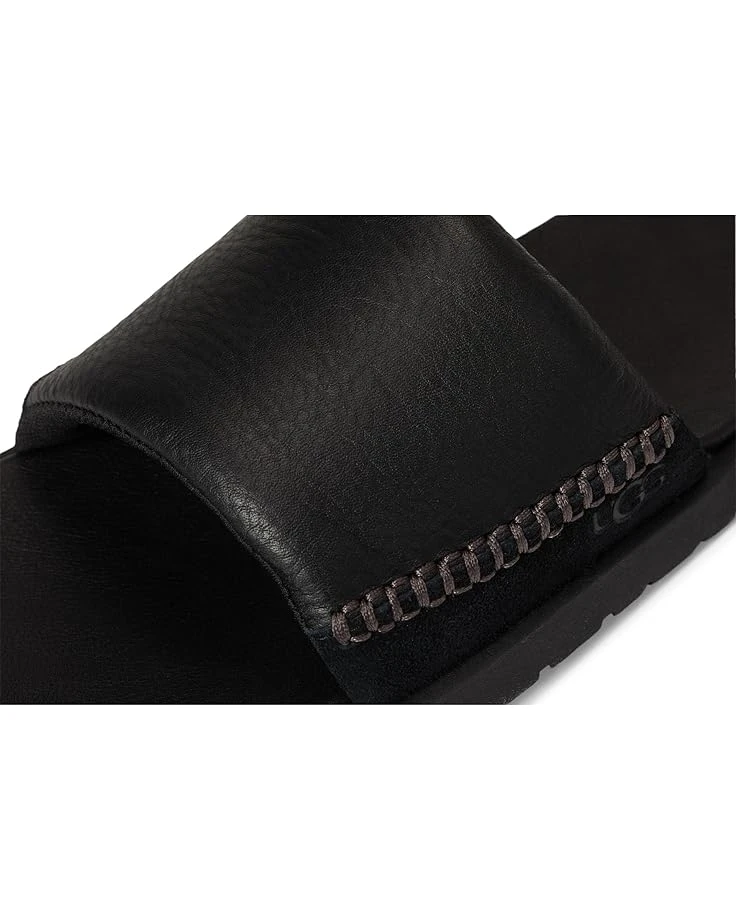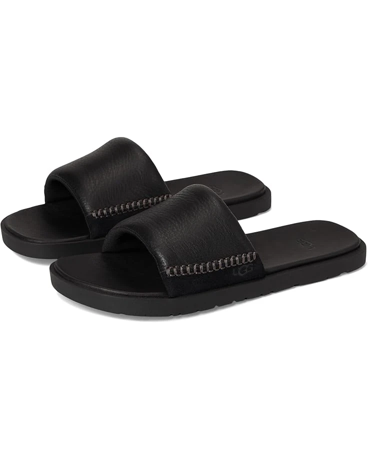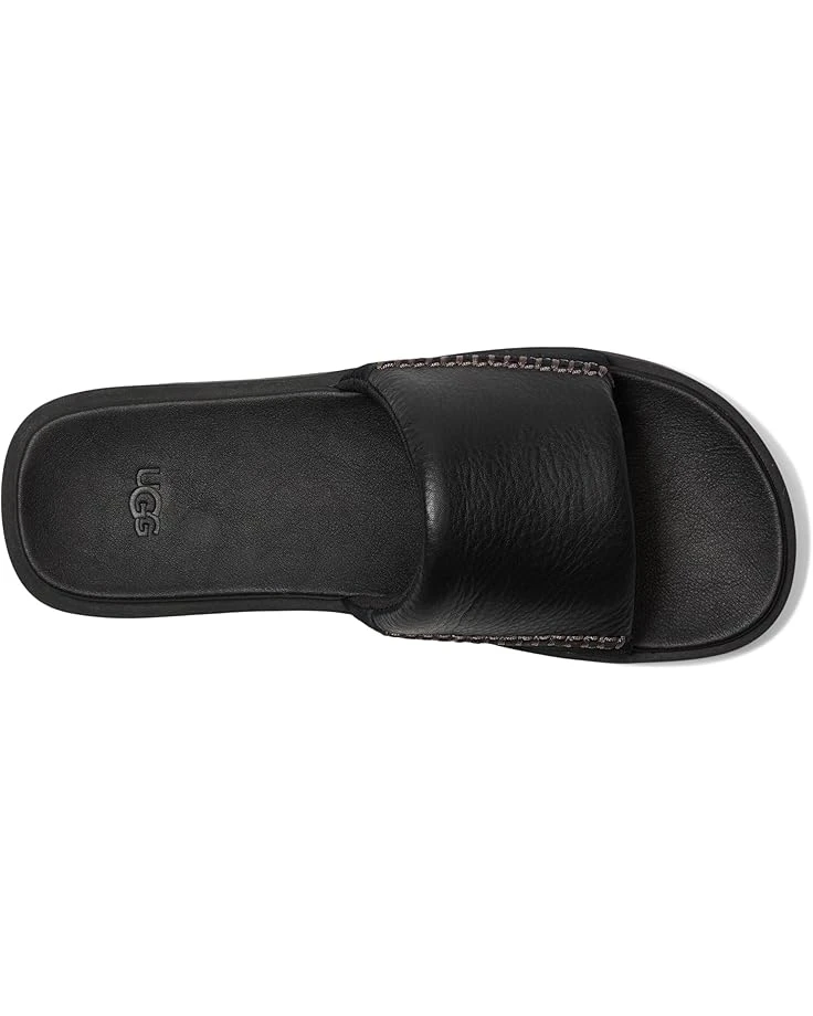 - Slip into leather luxury with the UGG® Seasdie II slide. The full-grain leather upper wraps you in softness from the smooth EVA footbed to the padded strap. The textile lining is made from 100% recycled polyester fibers. The contoured and cushioned footbed is also made from renewable sugarcane EVA, and an easy rubber outsole ensures a comfortable stride. Detailed with genuine suede, an open round-toe shape, and UGG®-classic box stitching, these slides are perfect for everyday casual wear.