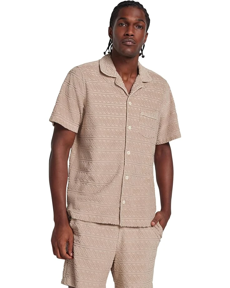 - Elevate your casual look with this effortlessly cool and versatile UGG® Tasman Terry Braid Shirt. This relaxed button up notched collar shirt with short sleeves features a front pocket on the wearer’s left chest and slight high-low hem. It has a ugg® woven flag label on the wearer’s left side seam.